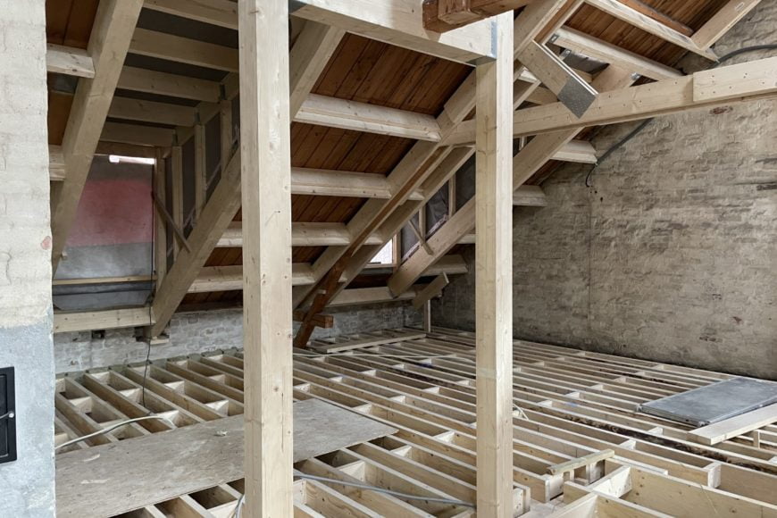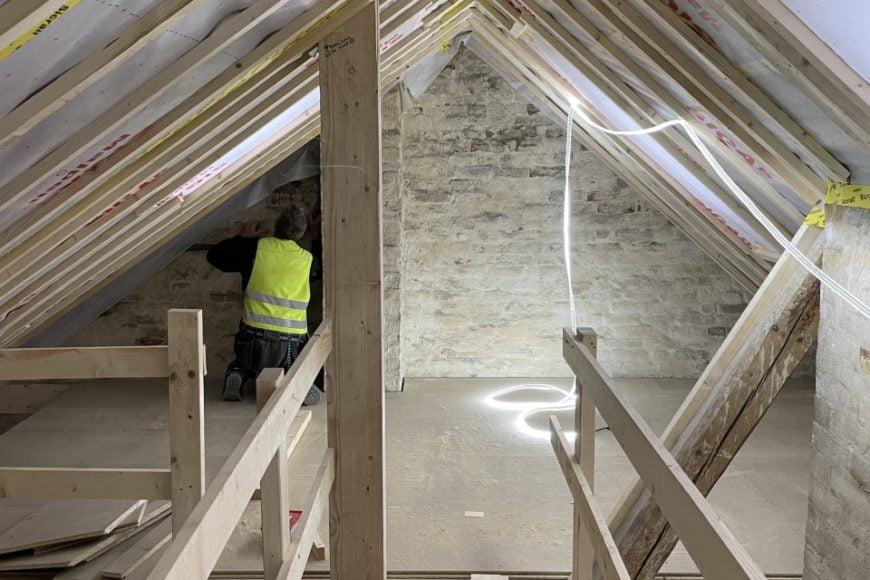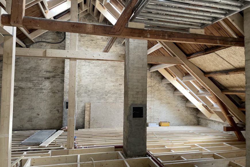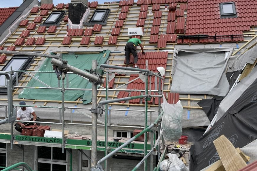Det utføres samtidig omlegging av tak, rehabilitering av fasade og oppgradering av brannsikkerheten i bygården.